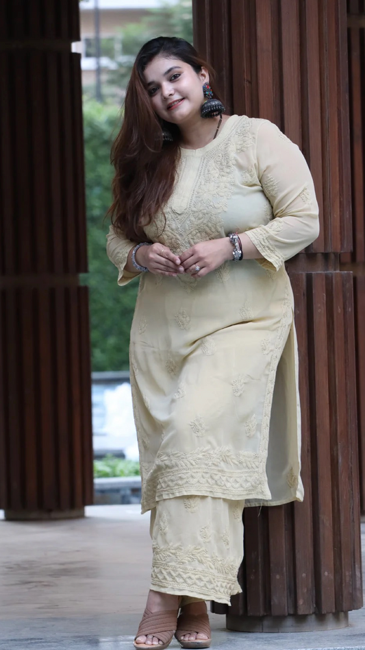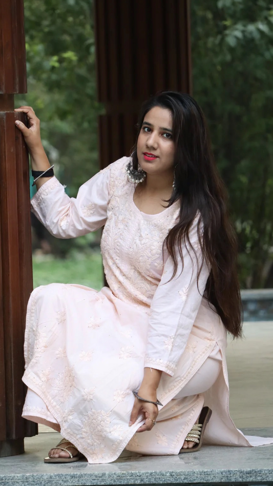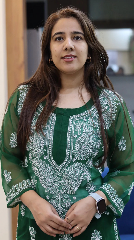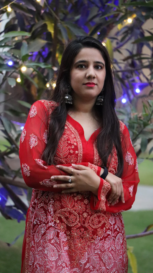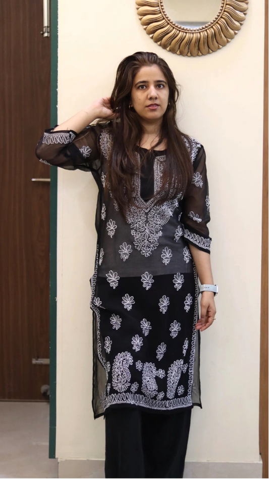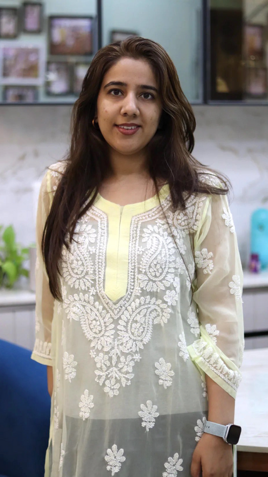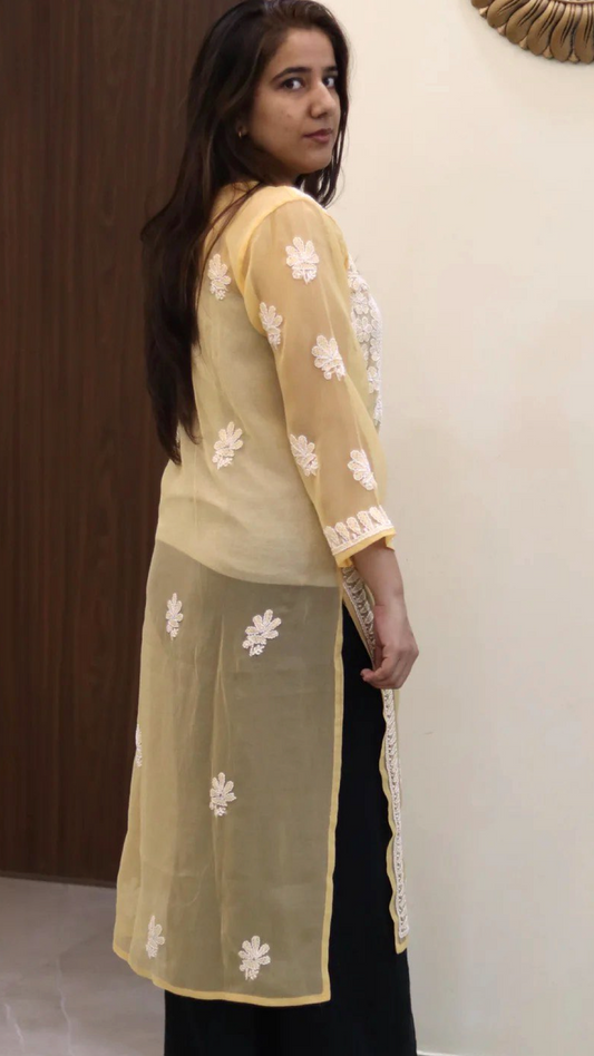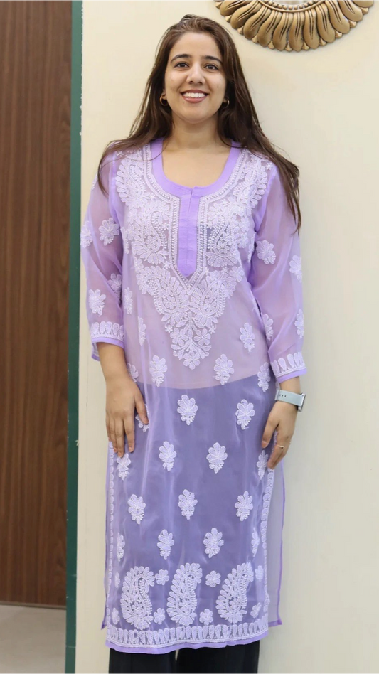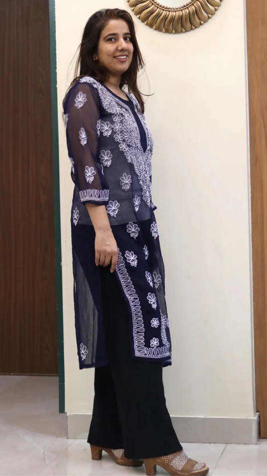 Chiffon Transparent Kurti with heavy embroidery on neck