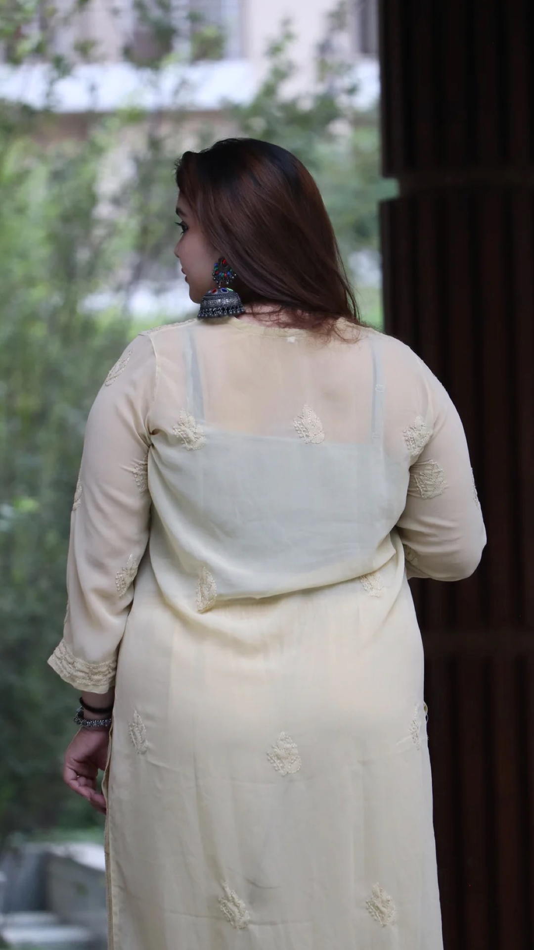- Hand-embroidered with Chikankari work